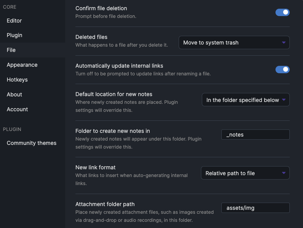 - Folder to create new notes in :